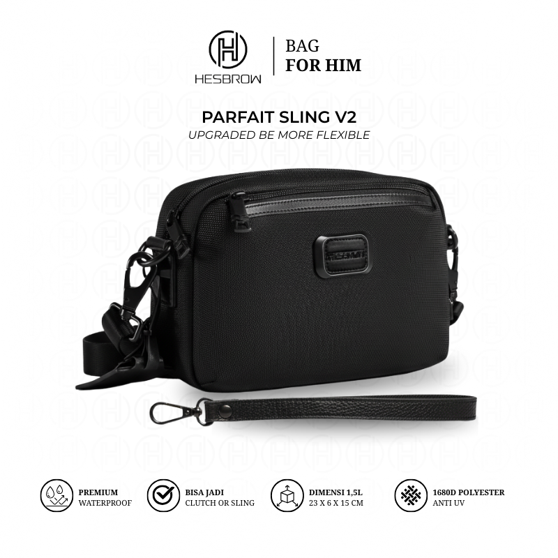 Tas ini merupakan versi upgrade dari Parfait Sling Sebelumnya dan dirancang untuk pria dewasa yang membutuhkan tas kecil namun tetap fungsional. Terbuat dari kombinasi 1680D Polyester dan kulit asli pada handle clutch, menjadikannya kuat, anti UV, waterproof, sekaligus elegan untuk digunakan ke kantor, rapat, maupun saat bersantai.! Tas ini bukan hanya stylish, tapi juga super fungsional dengan sling dan handle clutch yang detachable.